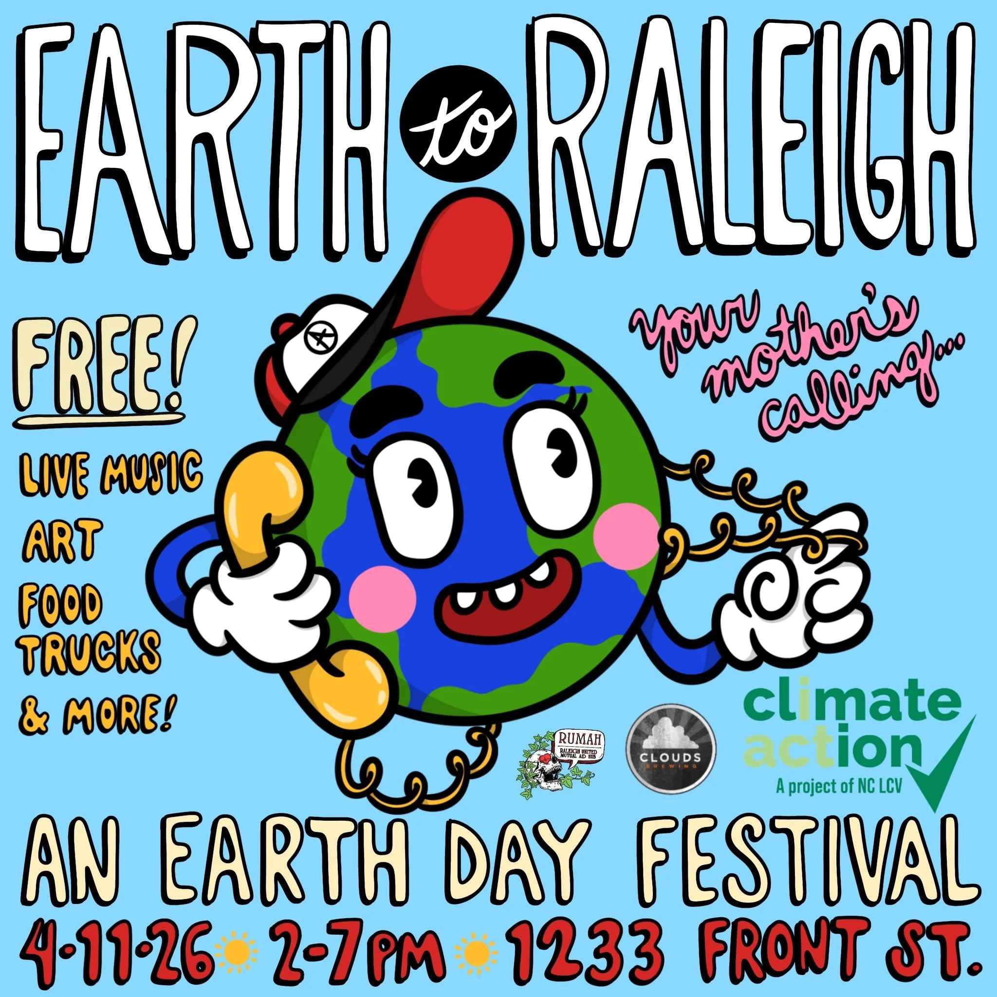 Join Climate Action NC and RUMAH for our 4th Annual Earth Day festival featuring live music, local artists, community organizations, fun activities for kids, live caricatures, henna, a local food truck, Clouds Brewing on tap, and so much more! Keep an eye out for line-up, vendors, and other exciting announcements!